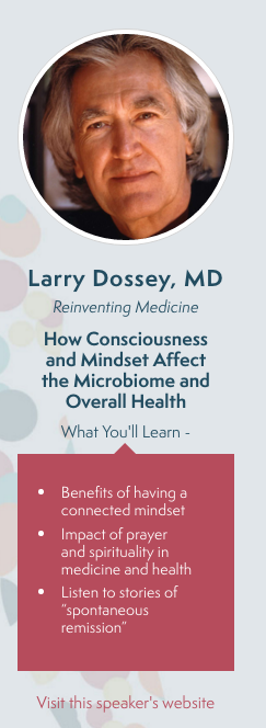 Just to close a little bit on the microbiome. I believe that the microbiome and its incredible interconnectedness to the outside bacteria and to every cell in every gene in our body, is a beautiful, physical example of that one-ness that you speak about. And that’s why you know, when I wanted to have people to talk about the microbiome I turned to you even though they say well “Larry Dossey talks about the One Mind.” but I said but no there’s a tremendous connection between the one mind and how it’s expressed here in the physical world.