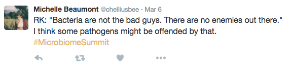 Well I think this expanded concept that these are our friends and most of them really are there for a benefit, it really forces us to reinvestigate and rethink what we mean by antibiotics. I mean I know you deal with this all the time, most of the antibiotics we take are sort of like a nuclear bomb. It just destroys everything within its reach. And that’s crazy. If we hold on to the idea that these things are there to help us then you don’t want to destroy the good guys and so I know that people are working now on specific antibiotics that could be targeted to specific microorganisms, and that’s the smart way to go and I think that’s where we’re going to see antibiotic use headed in the future.